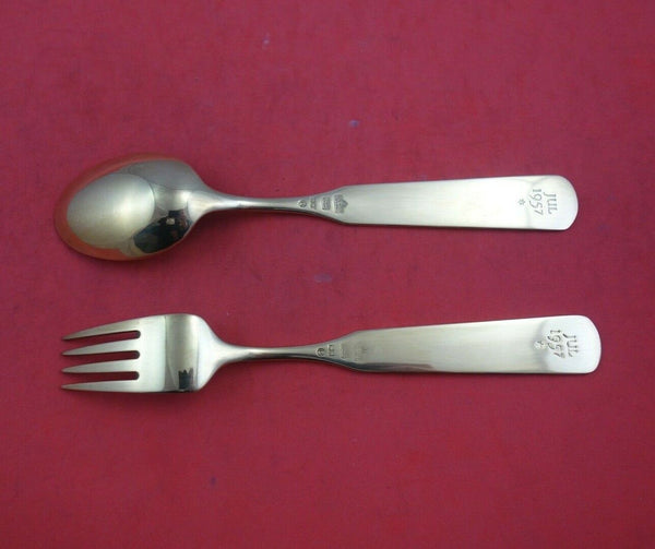 Christmas by A. Michelsen Sterling Silver Fork and Spoon Set 2pc 1957 Vermeil