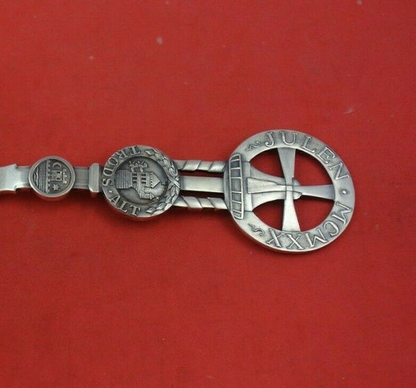Sterling silver Teaspoon 1920 "The Dybbol Mill" 6 1/2" in the pattern Christmas Spoon by A. Michelsen. This spoon is vermeil (completely gold washed) and was designed by Slott-Moller. It is not monogrammed and is in excellent condition.