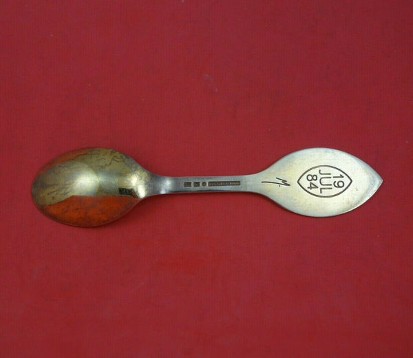 Sterling silver Teaspoon 1984 "Her Majesty, The Queen of Denmark, Magrethe II The Christ Child" 6 1/2" in the pattern Christmas Spoon by A. Michelsen. This spoon is vermeil (completely gold washed) and enameled. It is not monogrammed and is in excellent condition.