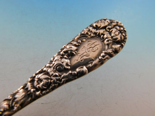Wonderful sterling silver Fish Serving Knife measuring 10 3/4" in the pattern Chrysanthemum by Durgin. This piece has a lovely floral handle flowing down the handle flowing into the beautifully decorated serving area. It is monogrammed (see photo) and is in excellent condition.