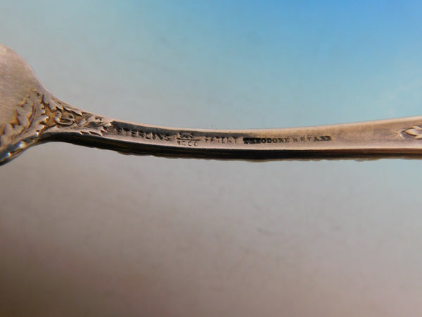 One of Durgin's most popular and beautiful patterns is '"Chrysanthemum". The design is of leaves and chrysanthemum buds and blooms on the front. The back displays 2 chrysanthemums in bloom among leaves and buds. The chrysanthemum flowers flow down beautifully onto the tines, bowls, and serving areas of many of the pieces.