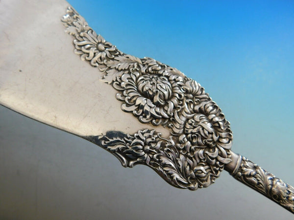 Exquisite sterling silver Ice Cream Slice measuring 9 3/4" in the pattern Chrysanthemum by Durgin. This piece has a lovely floral handle flowing down the handle and into the beautiful serving area. It is monogrammed (monos vary) and is in excellent condition.