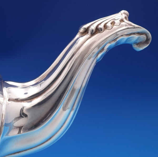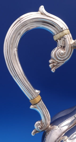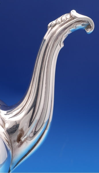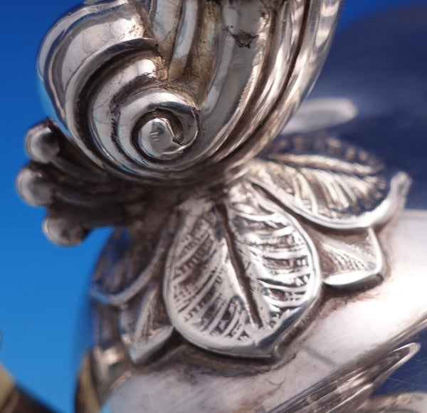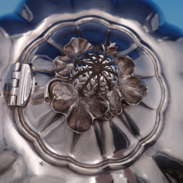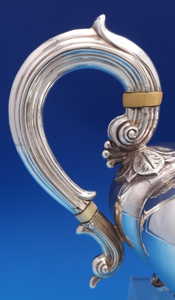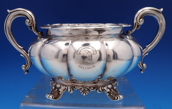 Beautiful CJ Vander London England c1979 melon form sterling silver four-piece tea set with kings style shell feet and 3-D melon leaf finials. This set includes: