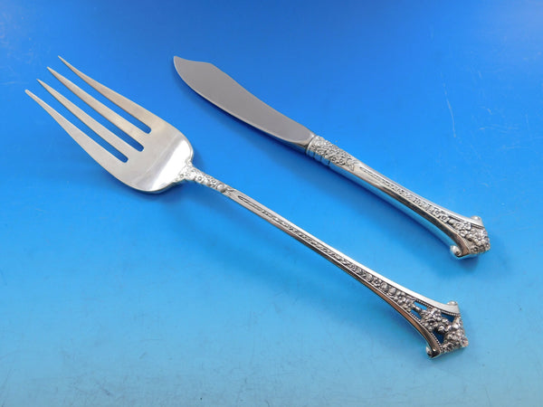 Classic Bouquet by Gorham sterling silver Flatware set, 77 pieces. The handle design is a bouquet of flowers with pierced and beaded detailing. This set includes:
