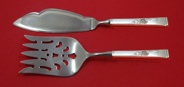 Add decadent design to your sterling silver tableware collection with our custom made sterling silver hollow handle with stainless Fish Serving Set in the pattern Classic Rose by Reed and Barton. This set includes two versatile serving utensils: