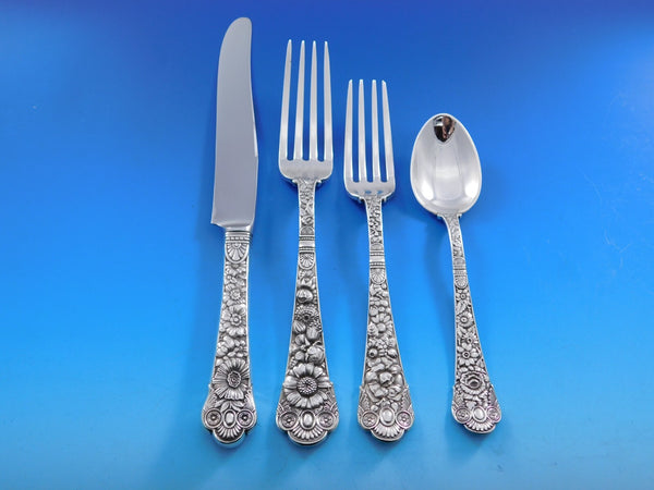 Exceptional Dinner size Cluny by Gorham sterling silver Flatware set, 60 pieces. This set includes: