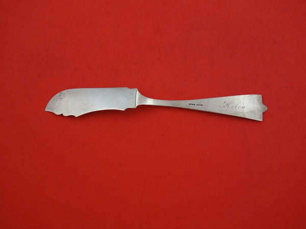 Coin silver flat handle Master Butter Knife, pure coin brite-cut handle and blade, "Helen" on reverse 7" . It is monogrammed (monos vary) and is in excellent condition.