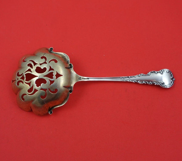 Sterling silver Pea Spoon Gold Washed Pierced 7 1/2" in the pattern Colbert by Frank Smith. It is not monogrammed and is in excellent condition.
