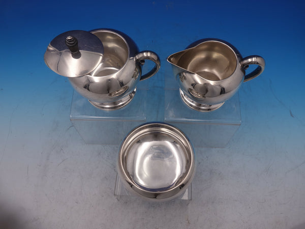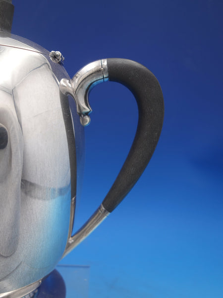 Wonderful Colonial Fiddle by Tuttle sterling silver 5-piece tea set (FDR - 7th year) with ebony handles finials. This set includes: