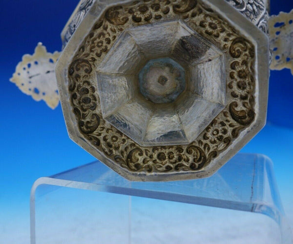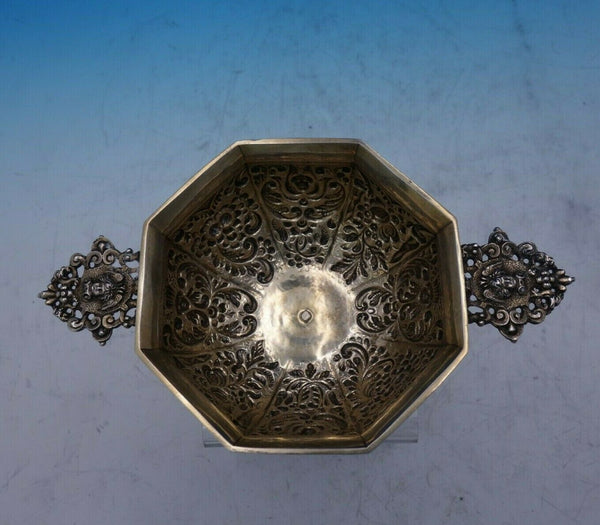 Colonial India Silver Bowl on Pedestal Base Vermeil w/Faces Fruit Flowers #3871