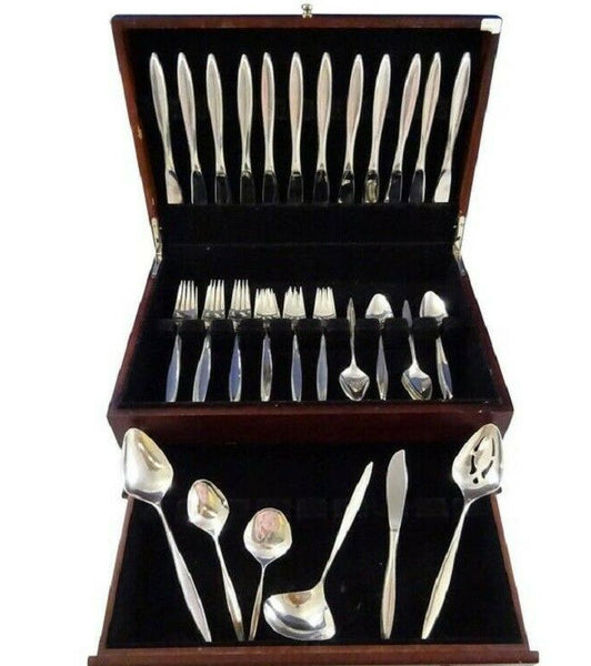 CRYSTAL BY INTERNATIONAL sterling silver Flatware set with elongated handles and unadorned modern design- 54 Pieces. This set includes: