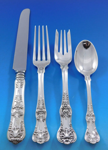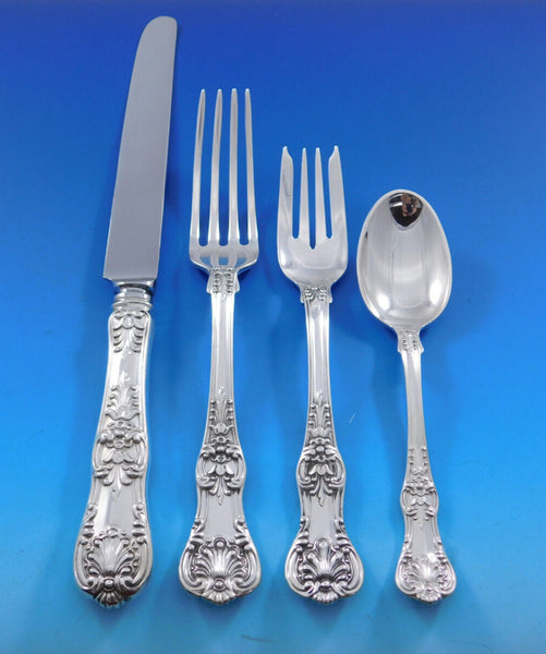 Dinner and Luncheon size English King by Tiffany Co. sterling silver Flatware set, 69 pieces. This set includes:
