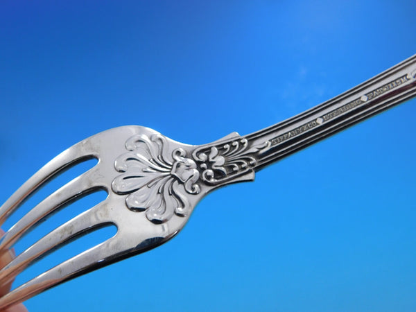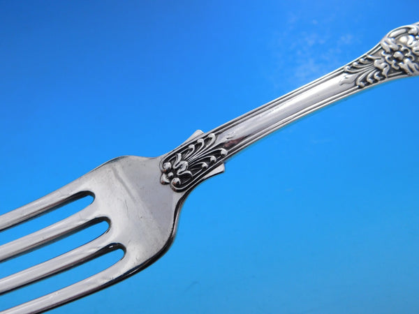 Patterns similar to our English King were first used in France and England late in the eighteenth century and have remained among the most popular styles for>flatware today, in both Europe and America. Tiffany Co. first made its own version of English King in 1885. It harmonizes with any eighteenth-century-inspired style neo-Georgian, Colonial, Louis XVI, Sheraton, Chippendale, Adam or Hepplewhite. The rich, intricate decoration of Tiffany's English King pattern reflects the luxurious entertainments given during the latter part of the eighteenth century and will enhance and give a sense of occasion to present-day settings.