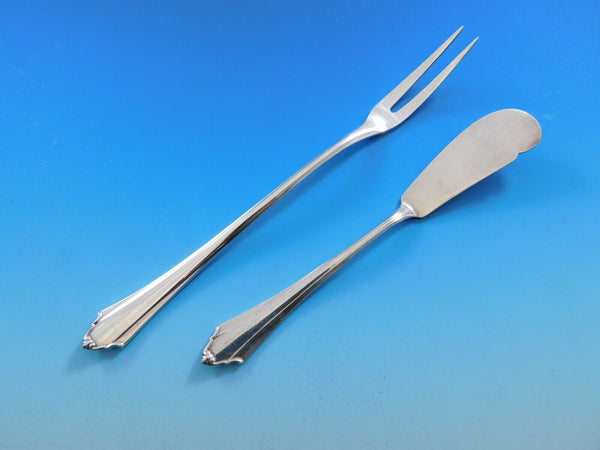 10 Knives, 8 1/2" 10 Dinner Forks, 7 3/4" 10 Salad Forks, 3-tine, 5 3/4" 10 Teaspoons, 5 1/2" 10 Place Soup Spoons, 7 1/4" 1 Berry Spoon, 8 3/4" 1 Gravy Ladle, 7 1/2" 1 Sugar Spoon, shell bowl, 5 1/8" 1 Flat Handle Master Butter Knife, 6" 1 Pickle Fork, long, 7 1/2"