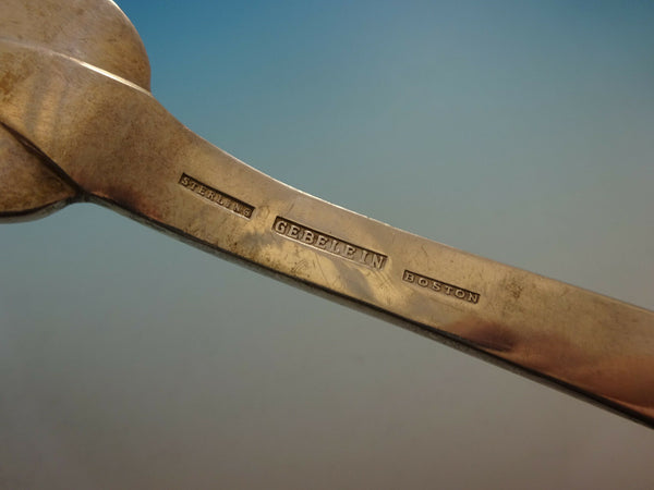 George Christian Gebelein is known as one of America's best Arts and Crafts silversmiths of the 20th Century. The Boston native has been called the "modern Paul Revere". He earned acclaim for the superb quality of his handcrafted silver and was highly respected as America's foremost expert in Colonial silver. He worked at Shiebler, Tiffany & Co. as a silversmith, and Durgin in his early years. The high quality of his work brought countless commissions for decades to come. His silver was special order handmade and custom commissioned. In the year 1906, he began marking his pieces with his name, as seen on this set. Much of his work was either inspired by or was a modern interpretation of Colonial silver. Examples of his exceptional work are displayed in the Museum of Fine Arts in Boston. The pieces are extremely well made with extra large banquet size knives and forks, and wonderfully heavy.