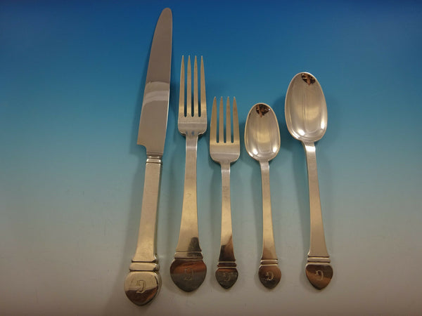 Exceedingly rare handmade sterling silver flatware set by George Christian Gebelein (1878-1945) - 91 pieces. This set is a work of art and includes: