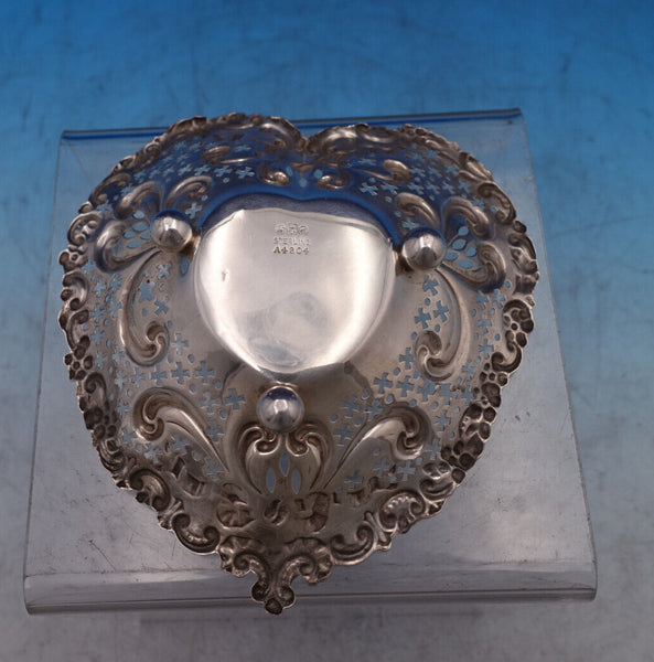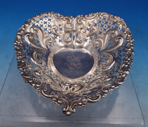Gorham sterling silver pierced heart shape Candy Dish with bows and scrolls, marked