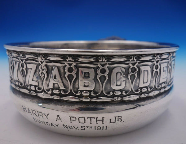 Exceptional Gorham sterling silver porringer marked #5829A. This piece features "ABC's" around the rim. It was retailed by Bailey, Banks and Biddle.