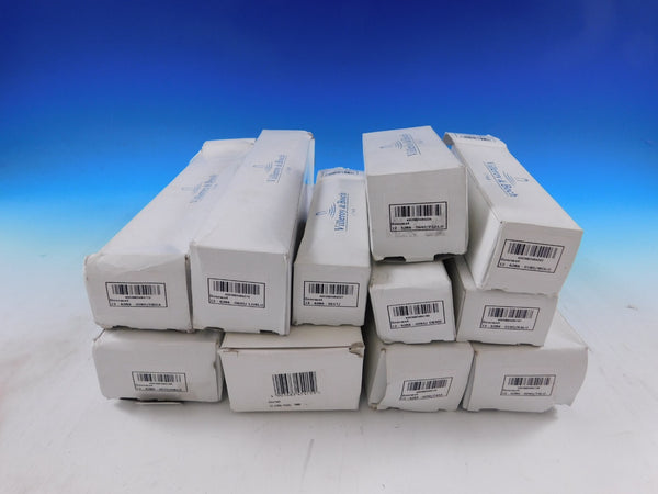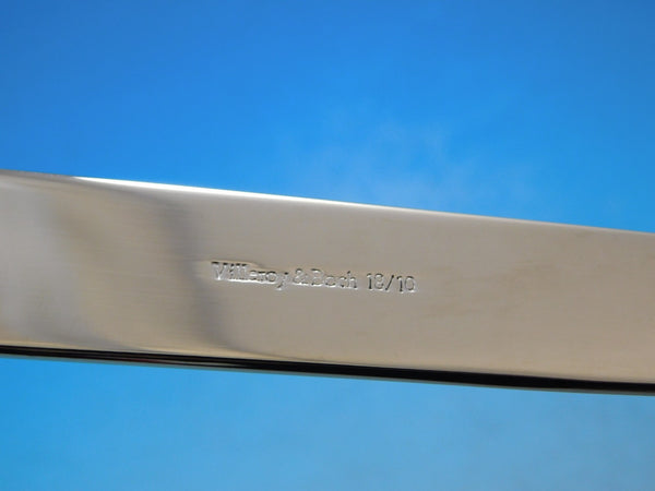 Large Gourmet by Villeroy Boch stainless steel Flatware set - 131 pieces. This set includes:12 Dinner Knives, #0065, 9 1/8" 12 Dinner Forks, #0050, 8" 12 Gourmet Forks, #0080, 7 5/8" 12 Teaspoons, #0160, 5 1/2" 12 Dessert Spoons, #0070, 6 3/4" 12 Dinner Spoons, #0040, 8" 12 Cocktail Forks, #0617, 4 3/4" 12 Iced Tea Spoons, #0600, 7 5/8" 11 Demitasse Spoons, #0180, 4 3/8" 12 Tasting Spoons (?), #0640, 3 1/2" 12 Appetizer "Blade", #0093, 5 1/8" x 1 1/4" Includes bonus brand new storage chest - styles vary.