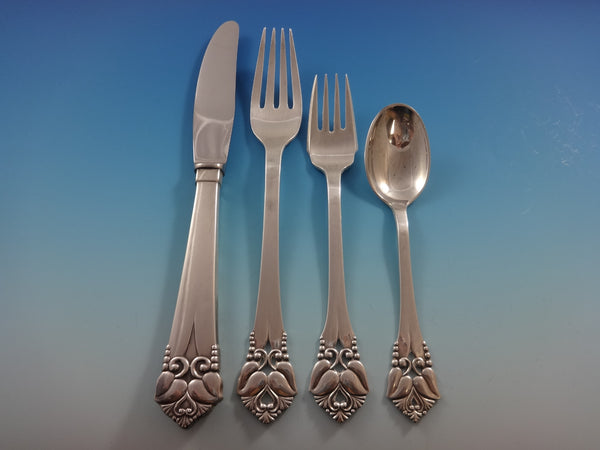 Greta by O. Mogensen Danish Sterling Silver Flatware Set Service 74 Pieces