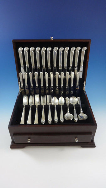 LAMERIE by TUTTLE sterling silver flatware set, 72 pieces. This pattern has wonderful pistol-grip knife handles. This set includes: