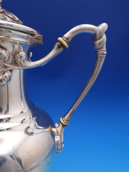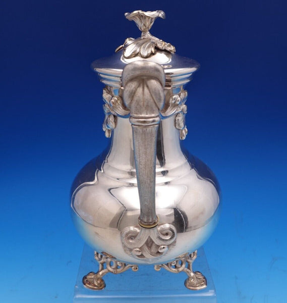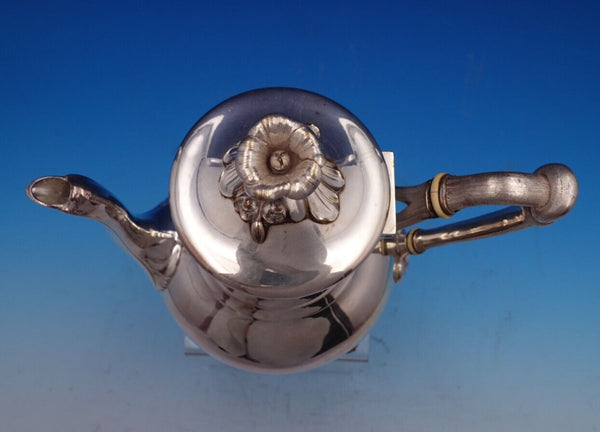 Spectacular Marly by Christofle silverplate coffee pot with beautiful 3-D flower finial marked #937276. This coffee pot measures 9" tall x 8 3/4". It is not monogrammed and is in good estate condition as shown in the photos, with minor surface scratches as expected with age. Wonderful piece!