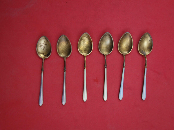 Norwegian Sterling Silver Demitasse Spoon, Set of 6 by Marius Hammer in fitted box vermeil. 2 lavender, and 2 sea foam and 2 light blue with roses 3 7/8". It is not monogrammed and is in excellent condition.