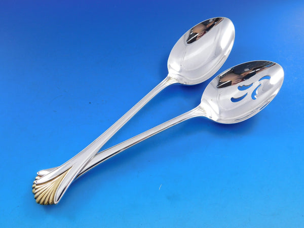 Gorgeous Regency Shell Gold by Lunt sterling silver Flatware set, 38 pieces. This set features a gold accent handle and includes: