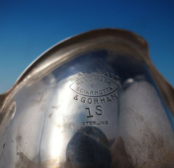 Beautiful handmade by Sciarrotta bowl (used mainly for olives) with four feet. This bowl measures 1 1/4" tall x 5 1/2" x 3" and weighs 3.0 troy ounces. It is not monogrammed and is in good vintage condition. Outstanding!